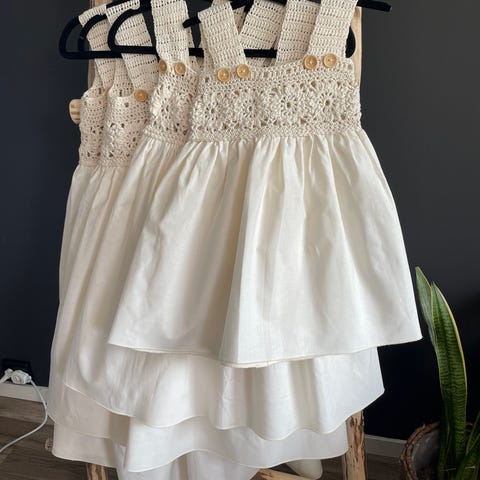 Nydelig hvit sommerkjole i bomull str 5-7 år, selges! Friske detaljer.
