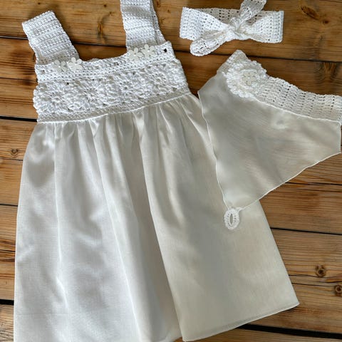 Nydelig hvit sommerkjole i bomull str 5-7 år.