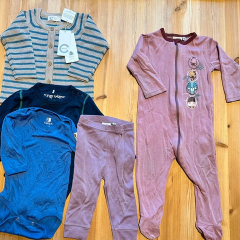 KUN TO SETT IGJEN. Selger flere sett med ullklær i str 74 fra merker som Hust and Claire, Celavi, Nameit og Cubus. Ene blå buksen er str 68. Se bilder for pris per sett. Alle plaggene er veldig pent og lite brukt uten hull eller flekker. Mininalt eller ingen nupper.