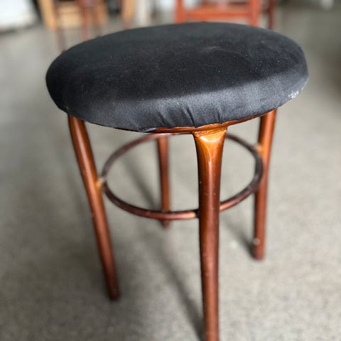 Ukjent alder.Sekskantet krakk i tre.Trekk er i mørkegrått plast/vinyl i skinnlook