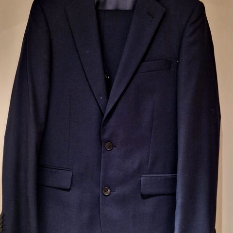 Lite brukt blå dress med hvit skjorte fra Mario Conti. Behagelig å ha på. Blanding ull/silke. Som NY!
