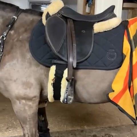 Har alltid hatt stigbøyleremmene under salkappen, så ingen slitasjemerker etter de