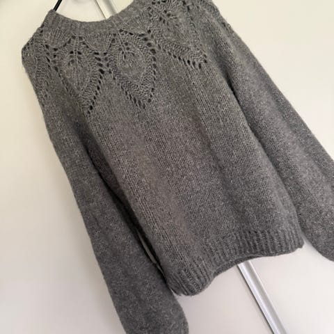 strikkejakke i bladmønster