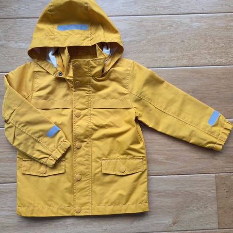 Jakken åpnes/lukkes med glidelås, den har hette.