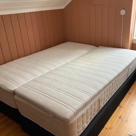1 stk seng med madrass 75x200. Hvit seng med lys madrass