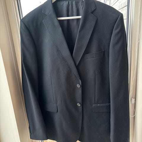 «Vår fineste dress kommer i en ren super 100 ullkvalitet. Her får du mye dress for pengene! Dressjakken kommer med normale slag, to knapper i front, to splitter bak, 5 innerlommer og brystlomme. Buksen har normal front, to stikklommer og to baklommer.
