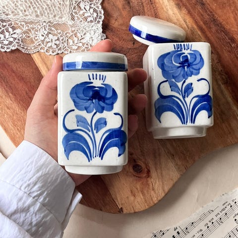 Håndmalt tekrukke, Delft Blue.