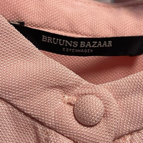 Selger en meget pent brukt bluse fra Bruuns Bazaar i størrelse 36. Blusen er laget i et superlett stoff og har et kult, asymmetrisk mønster som gir et moderne og stilfullt uttrykk.