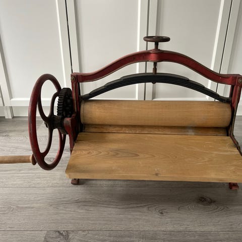 Antikk klesrulle med sveiv, hel og fin.