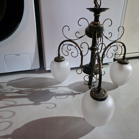 Takpendel/taklampe med tre lyskilder selges. Antikk/gresk, klassisk stil.