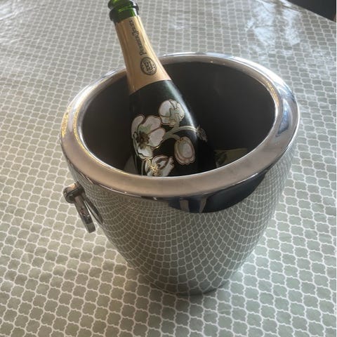 Helt ny klassisk vinkjøler fra tyske WMF laget i høyglanspolert 18/10 Cromargan rustfritt stål. Designet av Jette Joop. Høyde 23 cm. Ny pris 1295 kr.