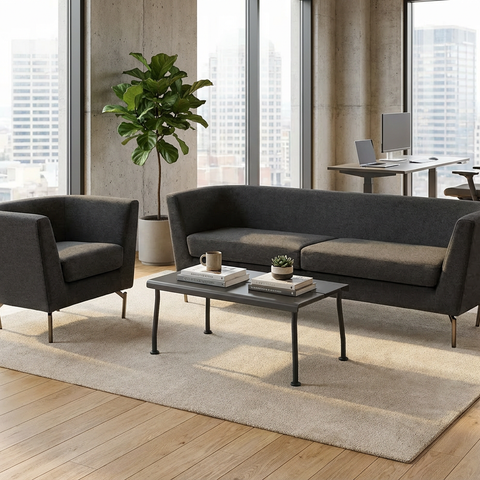 Caiser kontor- og konferansestol kan også leveres uten armlener og eventuelt med glidere i stedet for hjul, hvis ønskelig for kunde.
