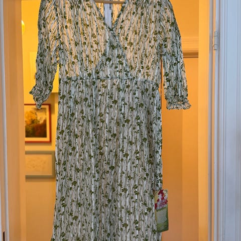 Nydelig feminin kjole i kraftig/mykt strech stoff. Følger kroppen nydelig. Flott snitt