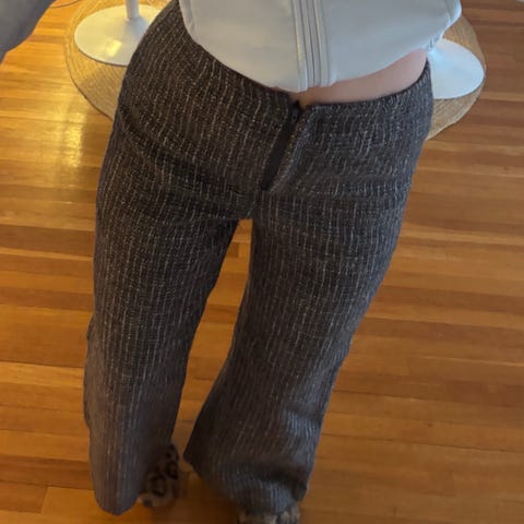 Helt ny retro bukse i str36, med merkelapp på.ordinær pris 1100,- kjøpt på Emilie ,merket er TurnoverBuksen er i 50 prosent ull og 50. Prosent bomull.