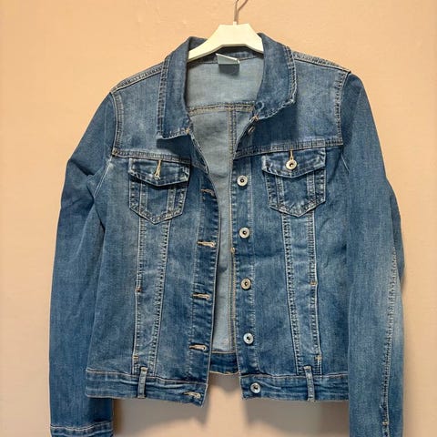 Flott kort jakke, kjøpt i Spania. Aldri brukt, en gave som ikke passet. Perfekt til vår, sommer og høst sesongen men kjole eller bukse. #tidløse #denimjakke #blå