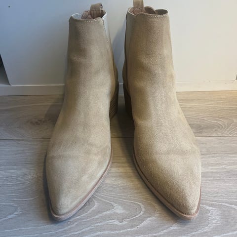 Selger disse beige semskede støvlettene. Kjøpt på Texto i Cannes i Frankrike for et par år siden.