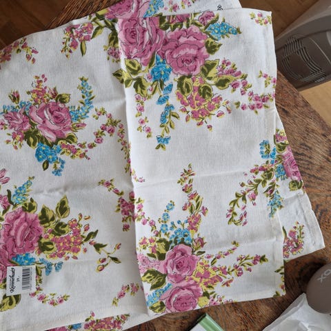 5 stk gardiner I hvit farge med rose mønster 100 % bomul med tre putetrekk 40×40