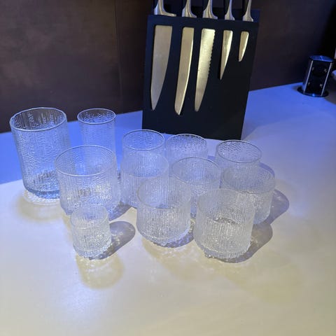Meget pene glass. Liten Whisky-størrelse. Pris for alle. Høyde ca 7, diameter ca 6,5 cm.