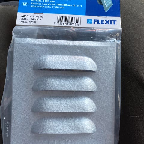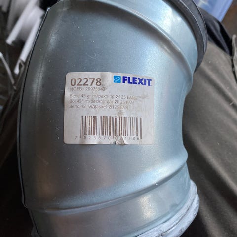 Flexit nr 400048 for 125mm rør. Har 15 stk, pris pr stk. 3 er uåpnet i plast, resten er åpnet men ikke brukt. Dette er under halv pris