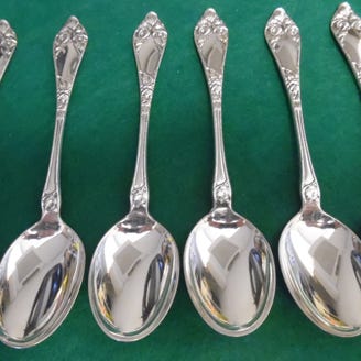 7 dessertskjeer 14 cm - kr 400 pr stk med rundt skjeblad som isskjeene
