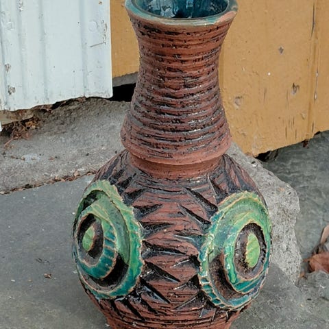 VINTAGE/RETRO VASE "GRØNT GLASS/JERN - METTAL GAMMEL