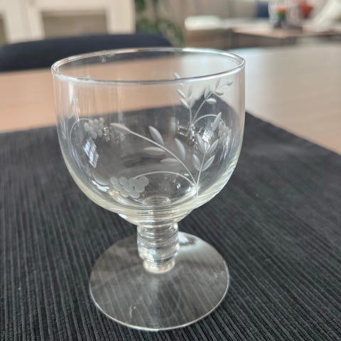 Glass skål på stett i blått glass. Skålen har bølget kant og dekorert mønster i glasset. Egner seg til servering av for eksempel godteri, nøtter eller som dekorasjonsgjenstand. Står stødig på rund fot i samme farge som skålen.