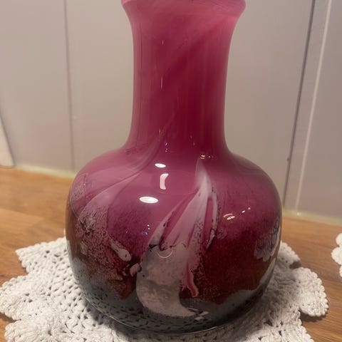 Fargerik vase i kunstglass