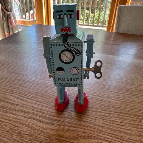 Kul og retro opptrekk/mekanisk robot/astronaut fra 70-tallet
