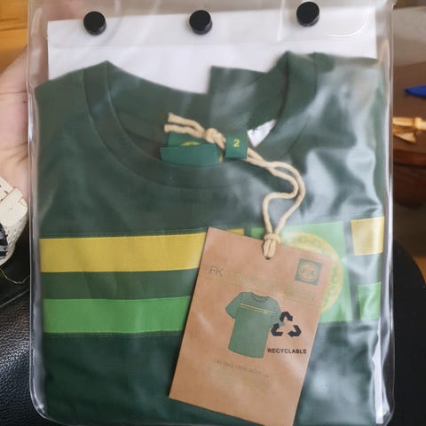 Pent brukt svart t-skjorte til salgs. Har borrelås i front og tilhørende bokstaver som kan festes på for å lage egne navn / beskjeder. Bokstaver A-Z medfølger, samt enkelte spesialtegn (f.eks. "www" og "?"). Bomull.