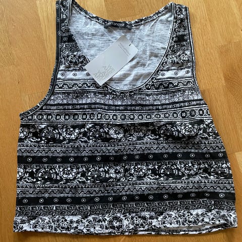 Ny vid topp fra Terranova m merkelapp og tekst 'I need to relax'. Lengde ca 38 cm. 100% bomull. Str S. kr 50