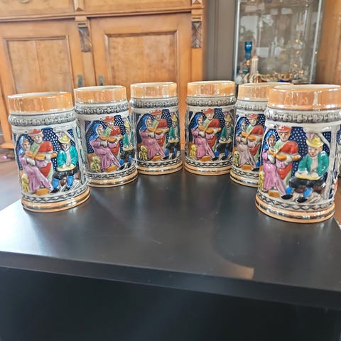 To ølkrus og et ølglass selges kr. 40 per stk.