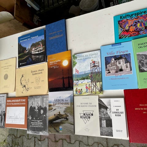 Selger en meget pen innbundet bok med tittelen "Bamble kommune 50 år".