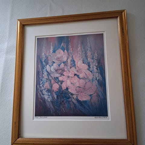 Grethe Berge bilde selges. Rammestørrelse 83 x 73 cm.