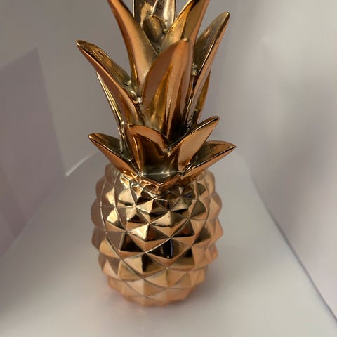 Selger en gull ananas. Den har en liten skade på det ene bladet, se bilde. Selges for 100
