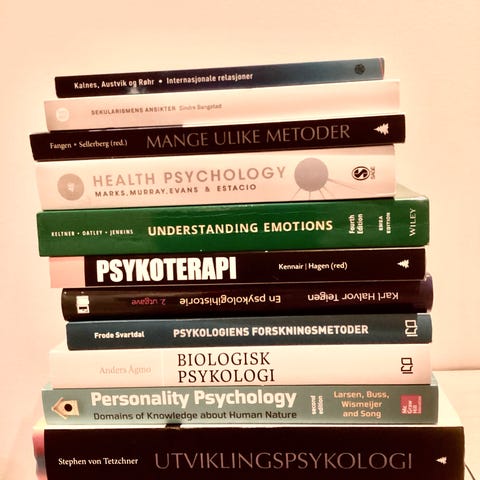 Psykologibøker + matematikk + APA-manual