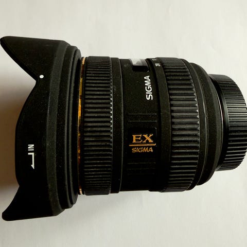 Pent brukt objektiv fra Sigma som passer til Nikon. Vidvinkelobjektivet er godt egnet til landskapsfoto og interiørfoto. Solblender følger med.