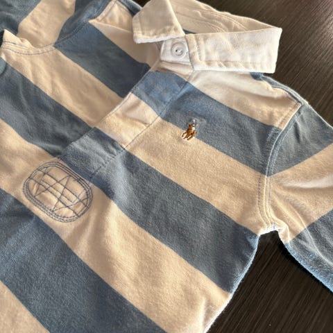 Polarn o pyret spakebukse. Str. 92 cm To knapper på skuldrene, reguler høyden. Mulig å lage brettekant på fot (se foto). Motiv på magen. Knapper rundt innside ben. Kroner 100