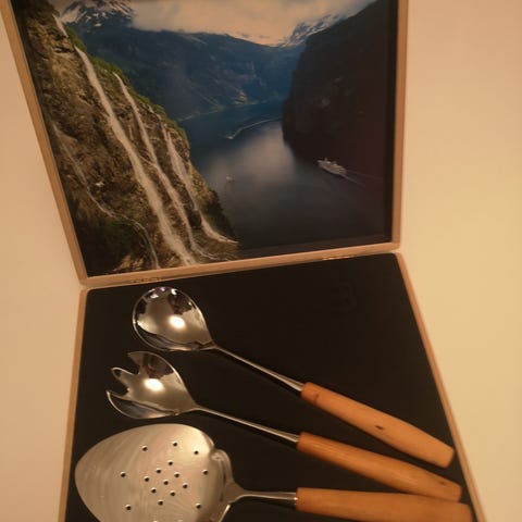 Ubrukt smørbrød og salat sett fa Bjørklund. Med skaft i bjørk. Selges 200,- pr sett