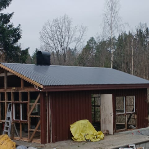Takplater 4 st. gis bort Gratis (397x105 cm). Brukt 3 uker. Sotet farge, bølget