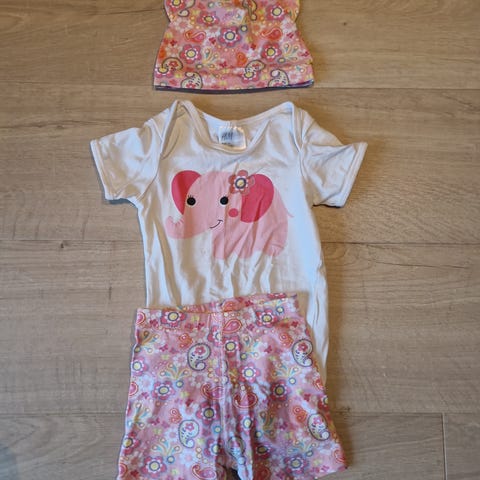 Pen liten klespakke med kjole fra mini rodini, solhatt og sommerbodyer fra Lindex og Newbie.