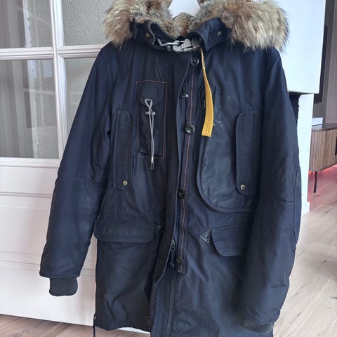 Fantastisk god og varm parajumper i superfin og noe sjeldnere farge. Har blitt renset en gang, kommet et lite hull på innsiden av lommen så denne er sydd og fungerer helt fint! Pelsen er noe slitt helt nederst ved hetten, men syntes ingenting når jakken er på. Ellers er pelsen tatt vare på, myk og deilig.