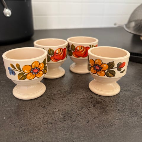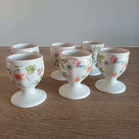 6 stk vintage eggeglass fortsatt i pakken. Kan også brukes som lysestaker.