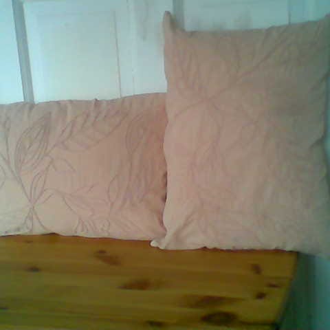 Selve putene er med julemønster (se bildene) og den ene er fylt med dun.