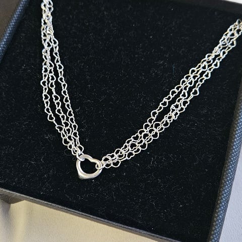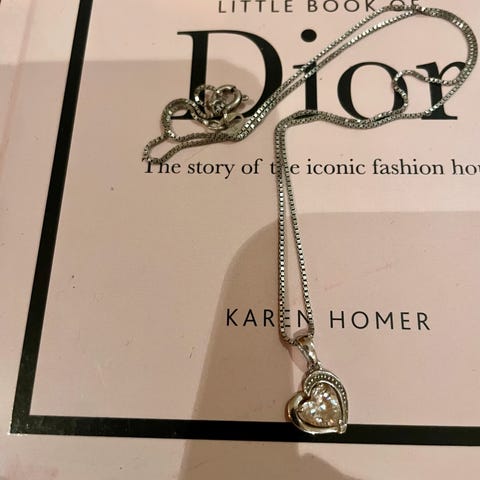 Flott kjede med hjerteanheng. Anhenget er i hvitt gull. Kjedet er i sølv.