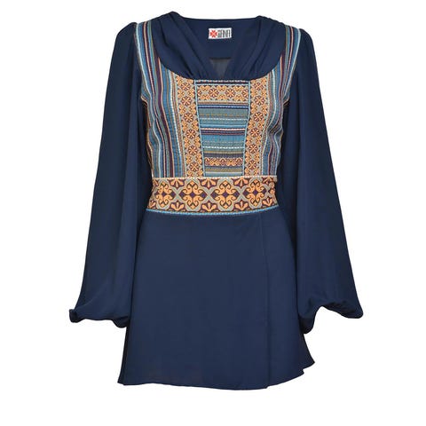 Med et unikt broderimønster og marokkanske knapper, vil denne tunika -