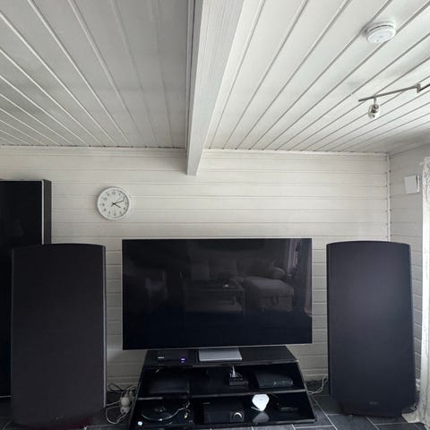 Komplett sett med to satellitthøyttalere fra Naim. De har blitt brukt sammen med en REL T5/i subwoofer som et stereosystem, og vi var veldig fornøyde med lyden. Systemet er senere oppgradert til nye høyttalere, derfor selges disse.