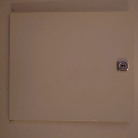 Dør til stoppekran med nøkkelen. Mål 50 cm x45 cm.