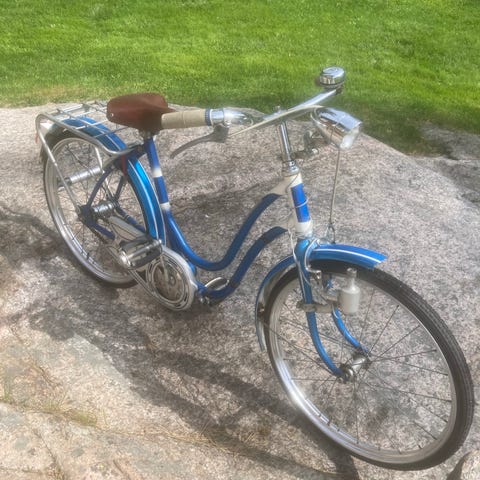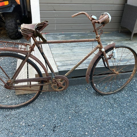 For meg ukjent alder .Mest til pynt😀Men med luft i dekk , og smøring av kjede , forundrer jeg meg ikke om den virker igjen .ser ut som det er en orginal Walt Disney ringeklokke og .Selges som den er , da den trenger å skinne hos noen andre nå , står bare i veien her 😀