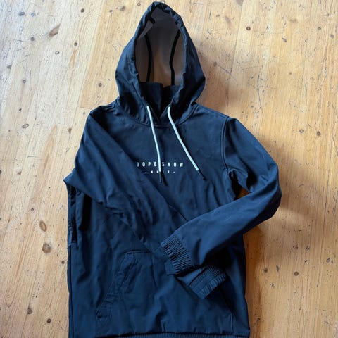 Kraftig hvit glidelås og kraftig hvit tråd til hetta. Omtrent ikke brukt.