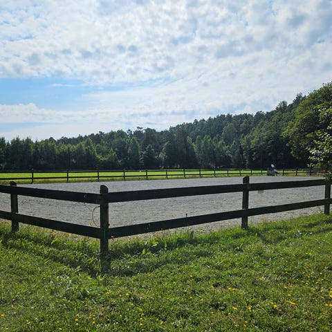 På stallen er det eget fôrrom, dekkentørkerom, låsbart salrom, pauserom med et lite kjøkken, toalett, vaskerom, vaskespilt og en ridebane. Vi har et veldig godt miljø uten intriger men med stor takhøyde.